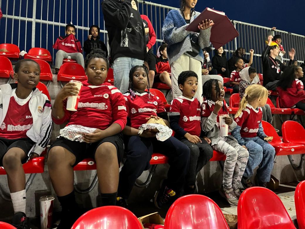 Nearly 150 youth from the KickStart program gathered at BMO Field one weekend in May to watch Major League Soccer’s Toronto FC vs. FC Dallas game.